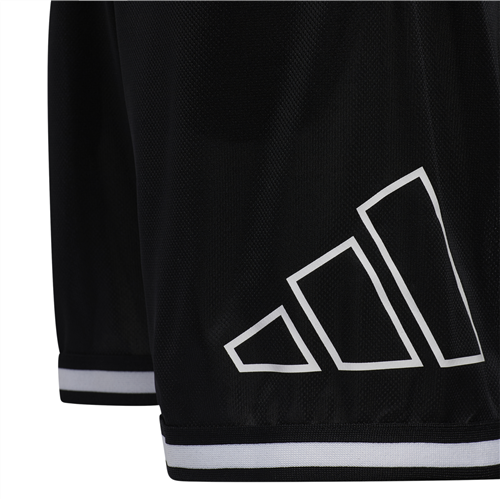 For the kid in your household with big B-ball dreams. Get them ready to run the floor with these adidas basketball shorts. Ventilated polyester is lightweight and breathable to keep them playing in comfort. A logo graphic completes the sporty look.