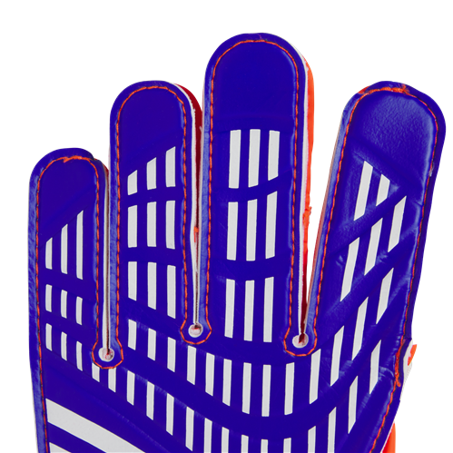 Own the goalie box in these junior adidas goalkeeper gloves that keep your game on point. Created to offer a good fit, the stretchy wrist strap on these juniors' Predator Training football gloves provides stability for comfortable handling. The Soft Grip latex palm adds cushioning, grip and durability in all weathers.