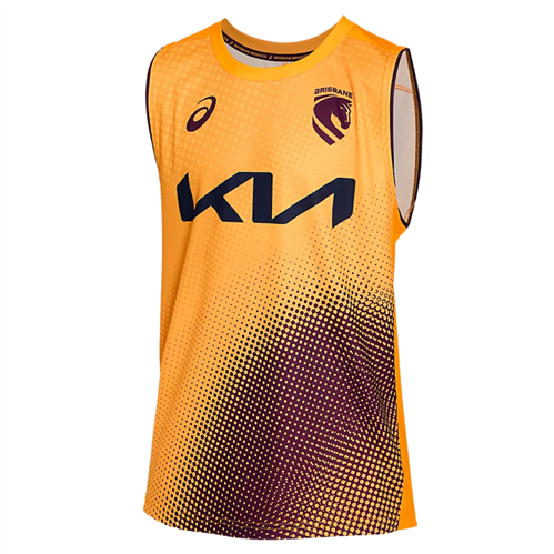 Step up your training with the Brisbane Broncos 2026 NRL Training Singlet in Gold. Sharing the same design elements as the maroon tee, it features a fully sublimated halftone pattern in classic Broncos colours for a bold, professional look.
