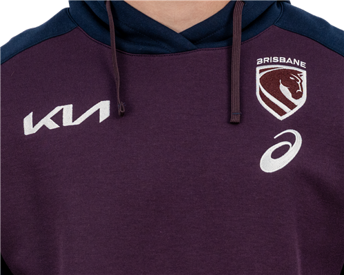 Team identity is clear but not overdone. Embroidered club and sponsor logos confirm this as official Brisbane Broncos NRL supporter apparel, while colour detailing through the sleeves and hood adds contrast without affecting comfort.