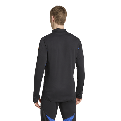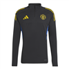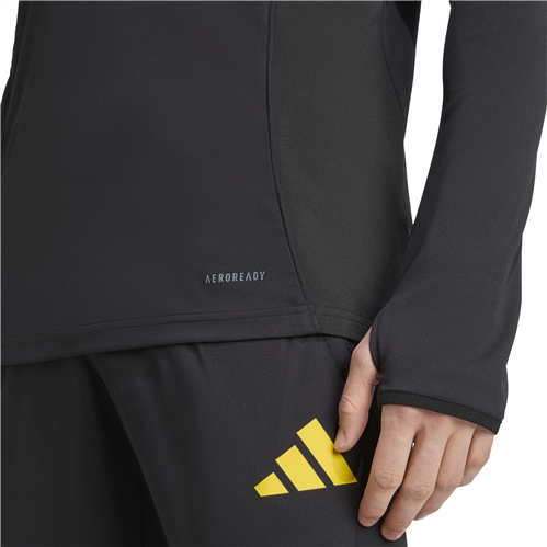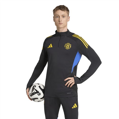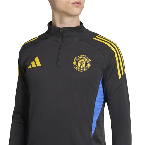 Designed the black and yellow colours of Manchester United's 2025/26 3rd jersey, this adidas football top belongs to the training kit the club's players wear before big matches. Its long sleeves have cuff thumbholes that let you pull them over your hands and that quarter zip allows you to further fine-tune your coverage. One thing that will never be a problem is moisture — AEROREADY kicks that into touch.