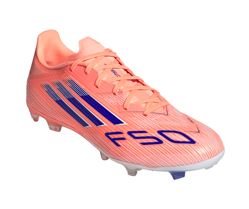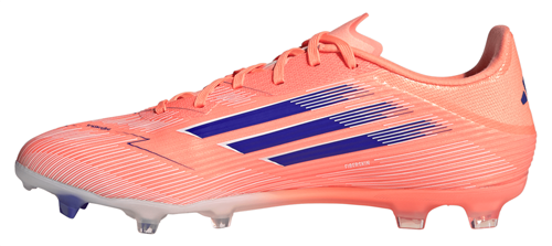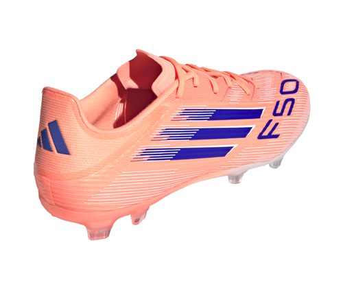 Push your pace and leave defenders behind with the adidas F50 League football boots – Coral Blaze Pack. Designed for speed, these boots are lightweight and responsive, perfect for fast attackers and midfielders on firm ground and artificial grass. The Coral Blaze colourway features bright Beam Orange with Lucid Blue and White accents, making your boots as bold as your game.