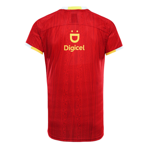 The design takes inspiration from classic 90s colour-block styling, overlaid with traditional Tongan ngatu patterns – a modern performance tee that also honours heritage.