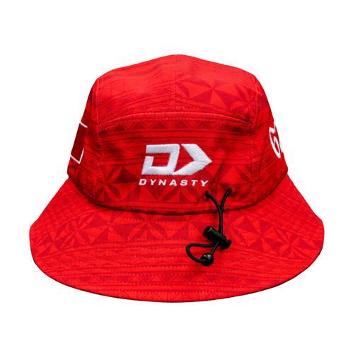 Made from lightweight polyester with mesh insert panels, this bucket hat keeps your head cool while offering solid sun protection — perfect for long days on the sideline or in the stands. The design features an embroidered Tonga Rugby League crest front and centre, with the Dynasty Sport logo stitched neatly on the back for a quality finish.