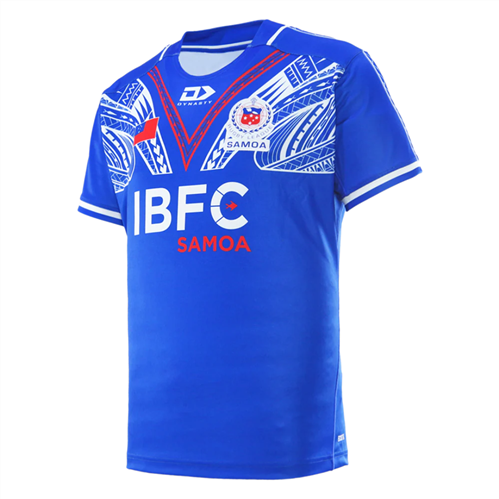 Embroidered Toa Samoa and sponsor logos on the chest.