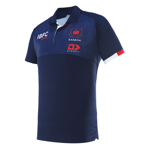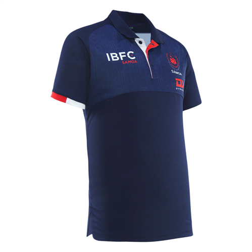Show your support for Toa Samoa in style with the 2025 Media Polo. Designed in the team’s full colour palette, the navy base is layered with black tatau-inspired patterns and pops of red logos for an authentic look.