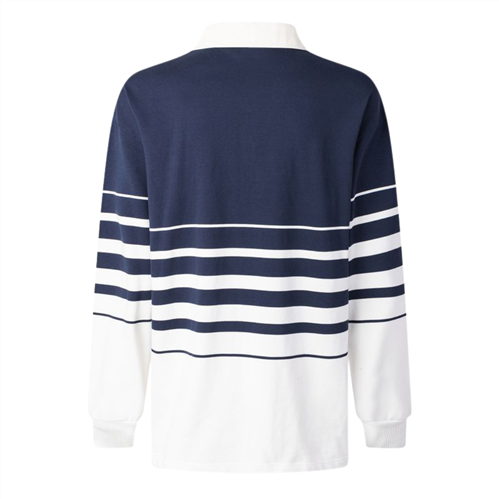 A: The cotton knit offers a relaxed, traditional rugby jersey feel that holds its shape well over time.