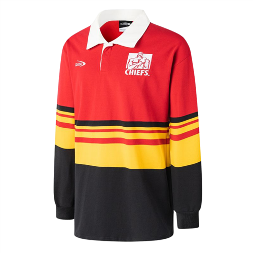 Made from soft, breathable cotton knit, it keeps you warm without weighing you down. The bold Chiefs colours and white club crest, paired with a traditional collar, give it a timeless look that honours the club’s proud Super Rugby history.