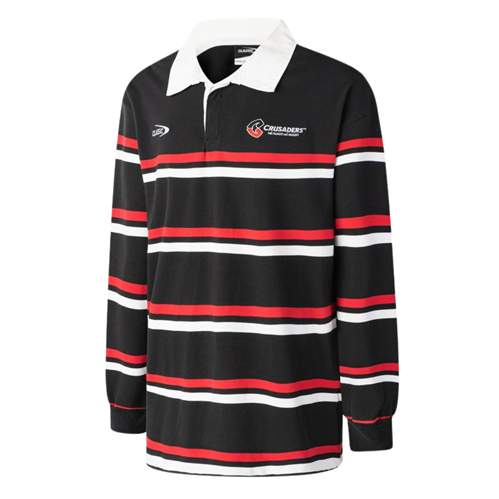Crafted from soft, breathable cotton knit, it offers warmth without feeling heavy. The bold red and white stripes, combined with a traditional collar, deliver a classic look that celebrates the Crusaders’ proud Super Rugby history.