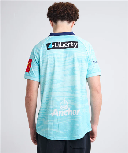 The bold teal colourway nods to Auckland’s harbours and coastlines, with dark blue details and a button-down collar that give the jersey a tidy, heritage finish. It’s a strong option for any supporter who wants a sharp-looking football jersey that carries the identity of the city.