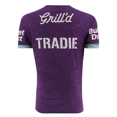 The lightweight polyester fabric is breathable and moisture wicking, helping move sweat away from the skin so you stay comfortable through long drills or tough conditioning blocks. It dries quickly between sessions and holds its shape, making it a reliable option for regular training. Finished with sublimated Melbourne Storm and sponsor logos and a clean stripe detail across the chest, it delivers team identity without sacrificing performance.