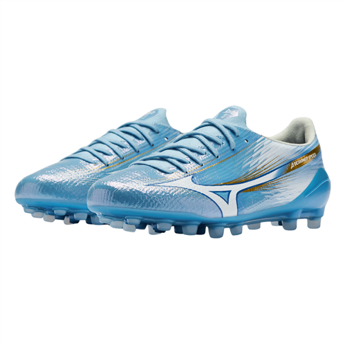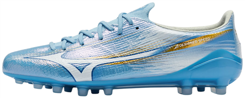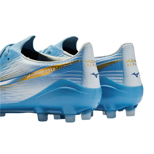 Underfoot, a lightweight nylon soleplate paired with Alpha Triangle studs provides the balance between straight-line speed and agility needed on AG surfaces. Mizuno ENERZY cushioning in the heel and sockliner improves energy return and comfort, helping reduce foot fatigue during high-intensity sessions and match play.