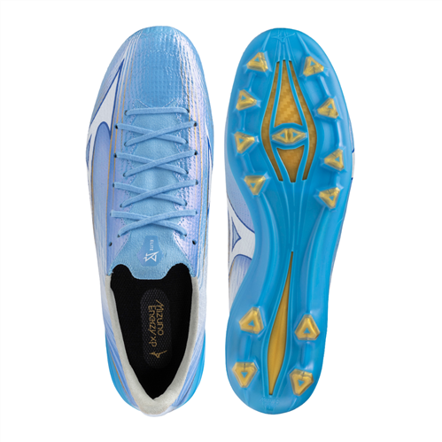 The Engineered Fit Knit upper with extra stitching creates a snug, secure fit that moves with your foot. Mizuno’s Alpha Last Neo ensures a performance-focused shape for explosive acceleration and responsive touch. The lightweight nylon outsole paired with Alpha Triangle studs delivers traction and agility, making quick changes of direction effortless.