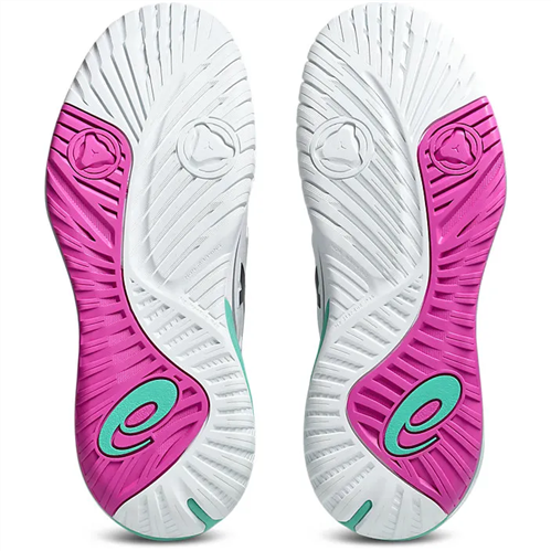Durability is also a major strength. PGUARD™ reinforcement protects the forefoot, while AHARPLUS™ outsole rubber holds up to the grind of hard-court play. Cushioning comes from Forefoot GEL™ technology, reducing impact and keeping landings softer on the body.
