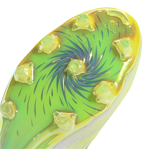 Sprintframe Fusion technology adds midfoot stiffness for quick turns and explosive acceleration, while the semi-conical stud layout supports smooth rotation and strong push-off on both firm ground and artificial grass.