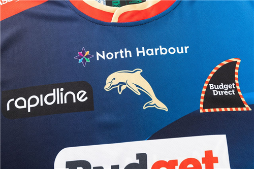 Sublimated Dolphins and sponsor logos that stay crisp and won’t peel