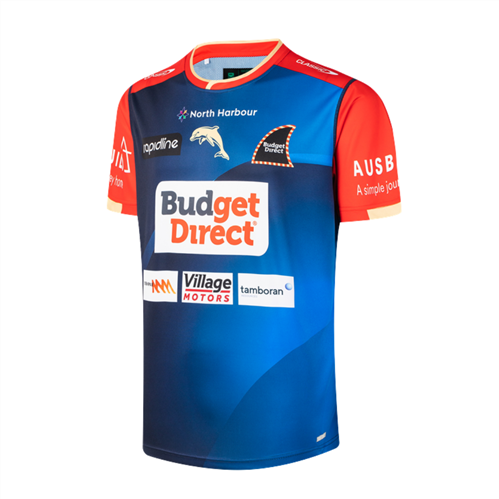 Stay sharp through every training session with the Dolphins 2026 NRL Training Tee in Navy Red. It is built for warm New Zealand conditions with lightweight fabric that dries quickly and keeps you moving freely. The club and sponsor details are fully sublimated so the colours stay strong season after season.