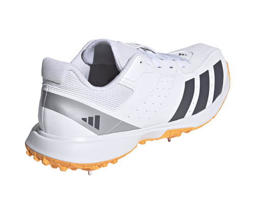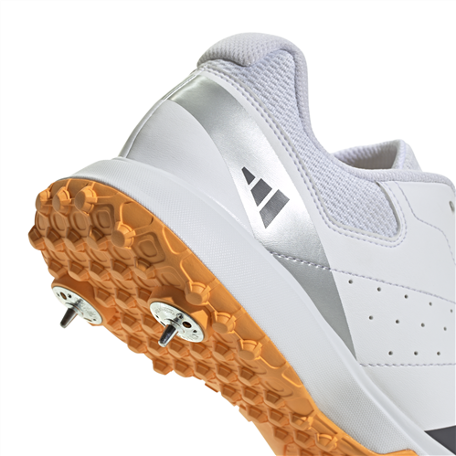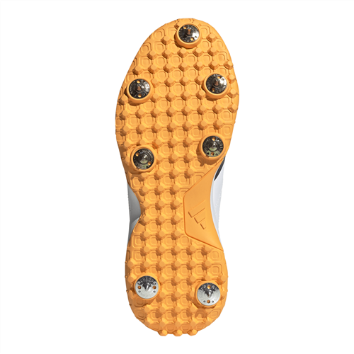 Full-length rubber lugged outsole with seven replaceable steel spikes for excellent grip on soft wickets.