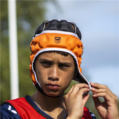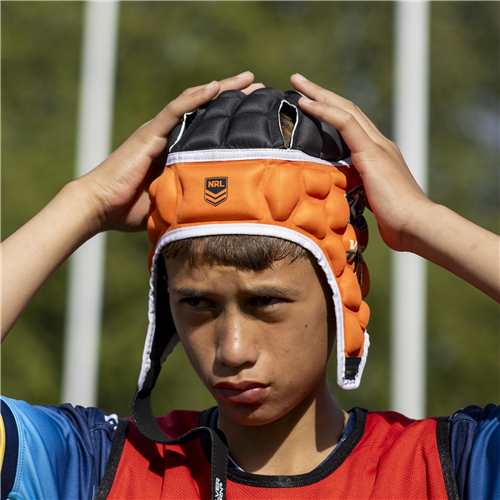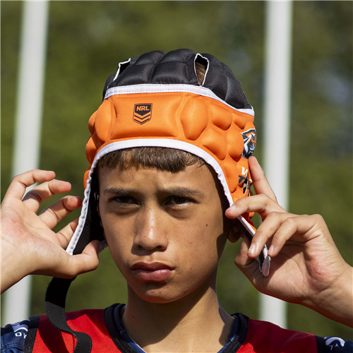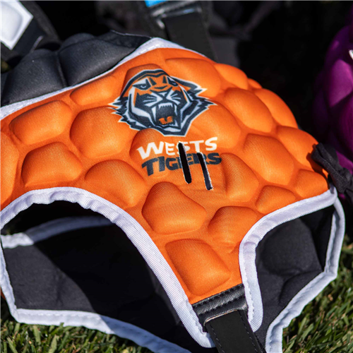 Protect yourself on the field and show your support for the Wests Tigers with this official NRL-licensed headgear.