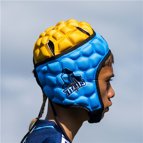 Back your team and stay protected on the field with the official Titans NRL headgear. Designed to meet playing standards, this rugby league headgear delivers reliable coverage against superficial head injuries like cuts, abrasions, and cauliflower ears — helping players step into contact with more confidence.