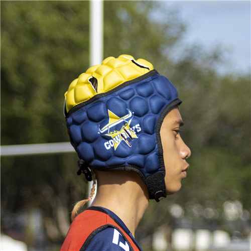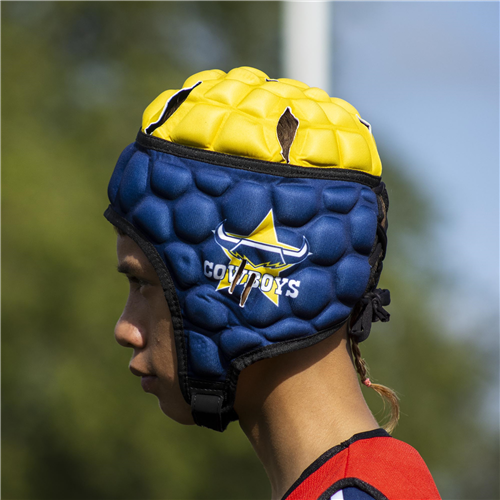 Back your team and stay protected on the field with the official NQ Cowboys NRL headgear. Designed to meet playing standards, this rugby league headgear delivers reliable coverage against superficial head injuries like cuts, abrasions, and cauliflower ears — helping players step into contact with more confidence.