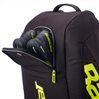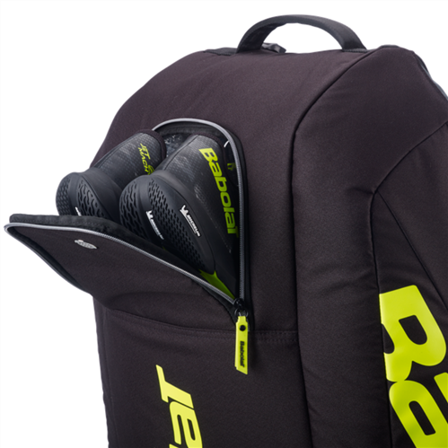 The RH12 features three spacious compartments for structured storage. One main compartment holds up to six rackets plus your playing essentials, while two medium compartments are designed to carry up to six additional rackets.