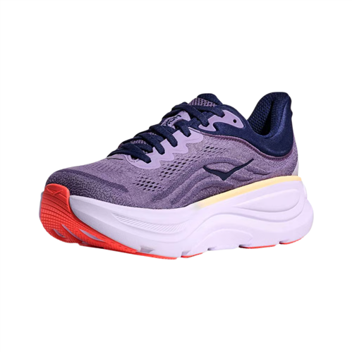 The HOKA Women’s Bondi 9 Wide running shoes in Berry Jam and Berry Patch are built for runners and walkers who need maximum cushioning with extra width through the forefoot. This D width model suits high mileage training, recovery runs, and everyday fitness walking on road surfaces. Ideal for pavements, park paths, and light gravel where comfort and fit are key.