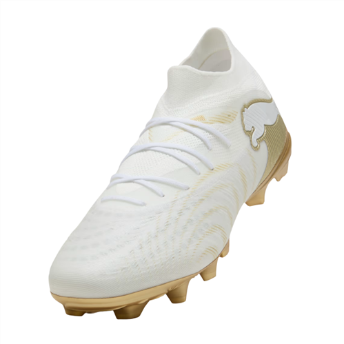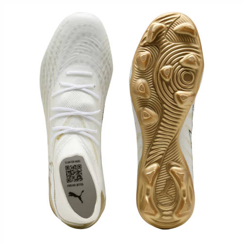 This colourway is part of the PUMA Whiteout Pack, pairing a clean white base with subtle gold metallic detailing. It’s sharp without being loud, and built to perform across training and match day.