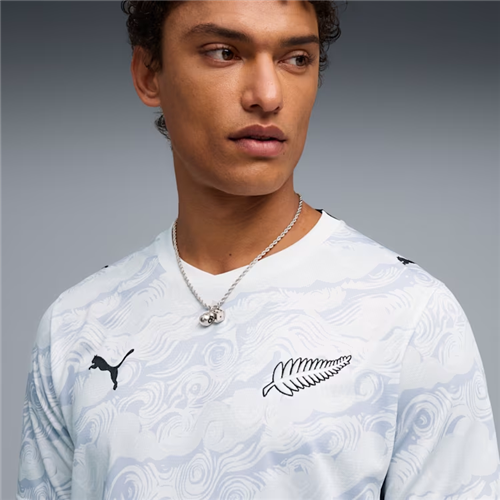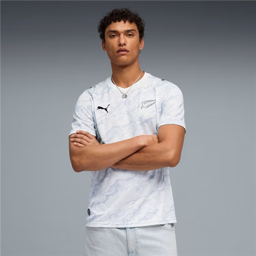 The PUMA NZ All Whites Away Jersey is a men’s replica football jersey designed for players and supporters. It’s built for training, match day, and everyday wear across New Zealand conditions. This is the away kit, featuring a flowing pattern inspired by the four winds.