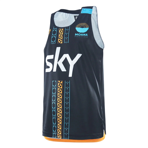 The Dynasty Moana Pasifika BlackTraining Singlet carries the team’s identity off the field with subtle pattern fills, traditional Pasifika bands, and a bold vertical Pasifika stripe down the front. Made for athletes looking for lightweight, breathable coverage without compromising movement or durability.