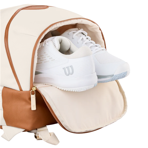 A premium tennis backpack built for players who move between the court and everyday life. Designed with input from Roger Federer, the Wilson RF Lawn Collection Tennis Backpack takes inspiration from classic grass court tennis and pairs it with practical storage for training, travel, and match days.
