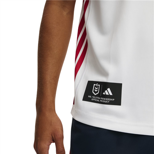 The adidas Sydney Roosters Away NRL Jersey is a rugby league supporter jersey built for fans wanting a clean match day look. It suits all levels of supporters, from sideline viewing to casual wear or light training. The white colourway with the signature tri-colour chest design gives it a sharp away kit identity that stands out without overdoing it.