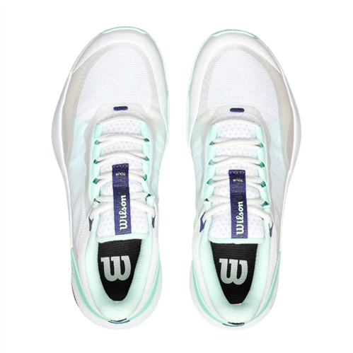 The Wilson Intrigue Tour is a tour-level tennis shoe designed specifically for the female foot. It delivers fast, responsive movement with full-foot containment and comfort, giving competitive players the support they need for intense all-court play.