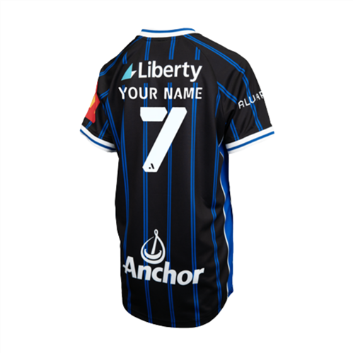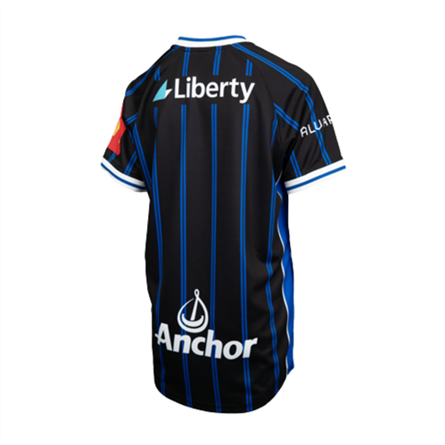 This junior replica carries the same design as the Auckland FC men’s kit. The black base with electric blue pinstripes reflects the club identity, while the ribbed collar and cuffs add structure and comfort.