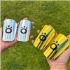 Ultra compact football shin guards at 10cm x 6cm